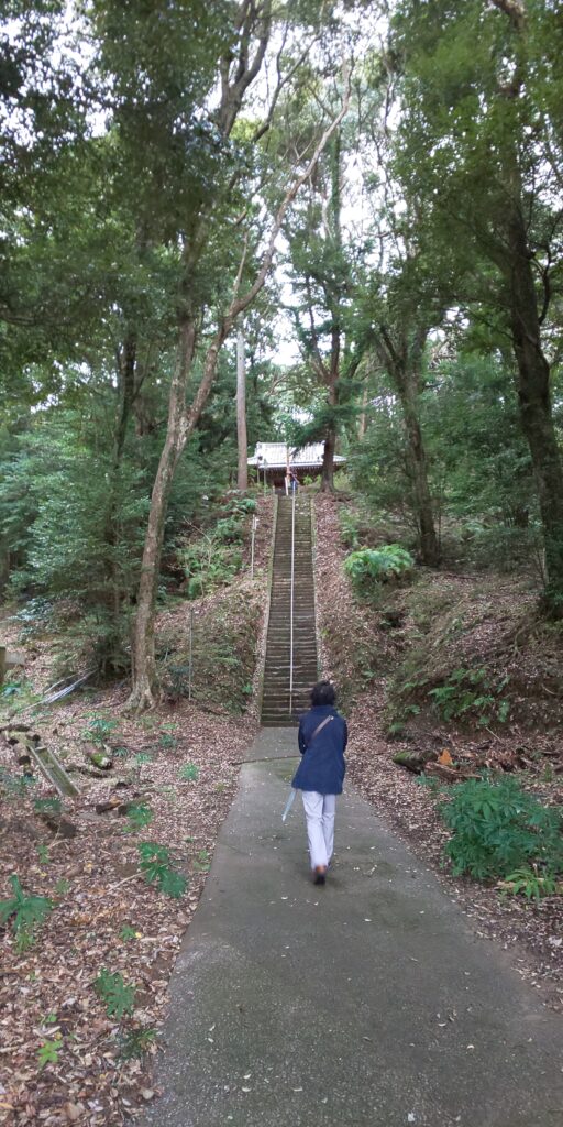 お寺は小原寺(しょうげんじ)と一緒になっており、小原寺の建物の奥に直線的な階段がググっと伸びています。階段がきつい人のために、脇に坂道も用意されています。男道と女道ですね。