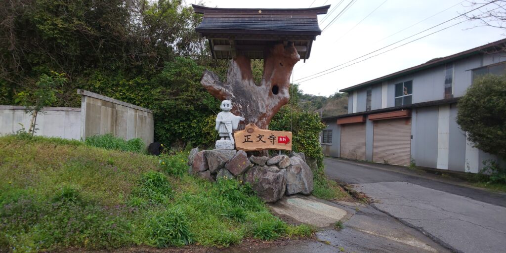 ナビに従って正文寺に行くと、小僧さんの可愛らしい石像の先にお寺の駐車場がありました。